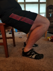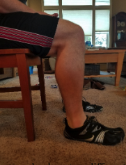 The test can be done two different ways but if you try both you will find out they both show the same flexion. The first way will allow both ankles to be tested at once. Start by sitting in a chair with bare feet flat on the ground and the knee at ninety degrees. Then slowly slide your bottom forward keeping your feet in the same place (i.e. slouch). If you have trouble getting your knee beyond your toes, then your ankle mobility is limited. A good mobile ankle should allow the knee to go anywhere from four to five inches past the toes before the heel comes off the floor.